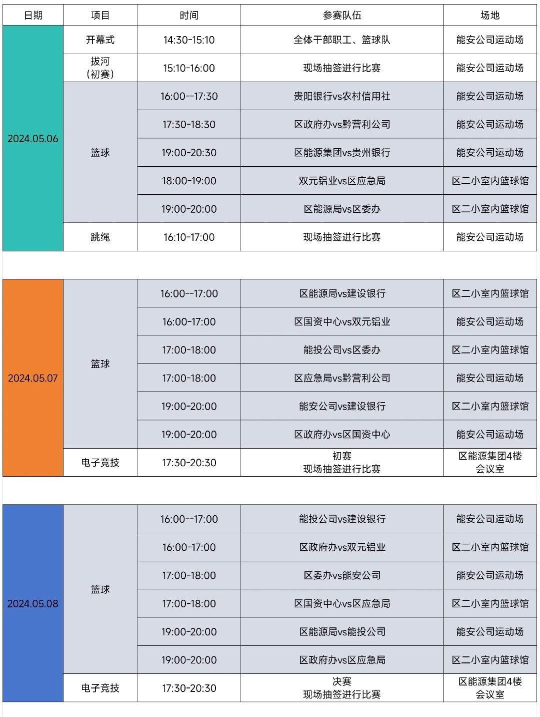 本屆職工運動會舉辦時間為5月6日-11日,比賽設有籃球、拔河、羽毛球、兵兵球、跳繩和電子競技等多個項目,不僅有展現水平的個人項目,還有考驗協作的團體競賽。我們期待每一位職工都能積極參與其中,在運動中尋找樂趣,在競爭中超越自我。